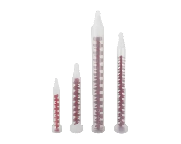 De afwisselende draairichting van de elementen zorgt voor een roterende stroming, waardoor de mengefficiëntie van hoogviskeuze lijmen, siliconen, schuimen, epoxy's en harsen aanzienlijk wordt verbeterd.